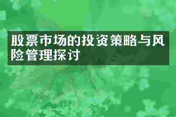股票市场的投资策略与风险管理是投资者在进行交易时必须考虑的重要因素。以下是一些常见的投资策略和风险管理方法: 投资策略1. 长期投资: - 价值投资